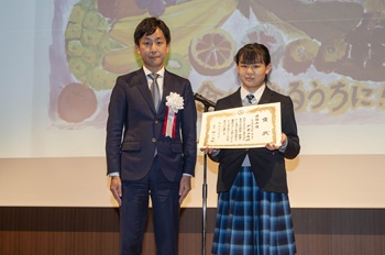 区は、令和7年度に「千代田区食品ロス削減絵画・標語展」を実施し、未来を担う子どもたちに対して、食品ロス削減に関する絵画・標語を募集し、応募総数565点の中から最優秀賞作品4点を決定しました。本大会では、最優秀賞を受賞した4名の小・中学生に対して、表彰式を実施し、その作品の紹介を行いました。