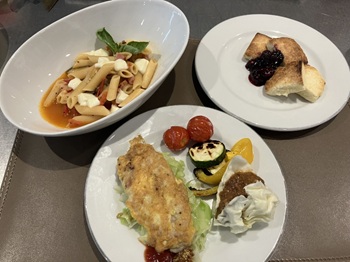 パスタセット(パスタ・豚ヒレ肉のピカタ・野菜のグリル)/プリホットビスケット&季節のジャム