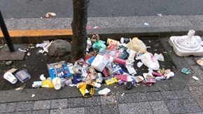 こうして発生したごみの山から、飲食店等のごみ袋だけがごみ回収業者により回収され、その他の大量のポイ捨てごみは残ることになり、さらに新たなごみを呼んでしまいます。飲食店等のごみ袋がすべての原因ではないと思いますが、原因の一つではないかと考えており、対策を検討していく必要があります。